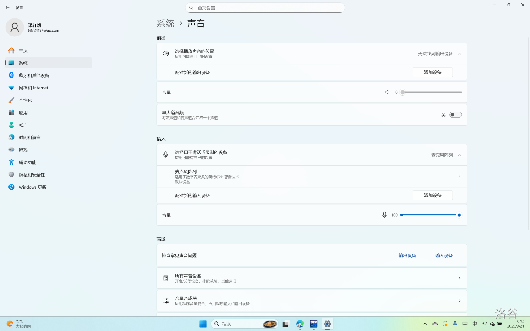 不知道为什么 但是今天早上开电脑发现没声音 一看没有找到输出设备 求助如何修理QAQ
