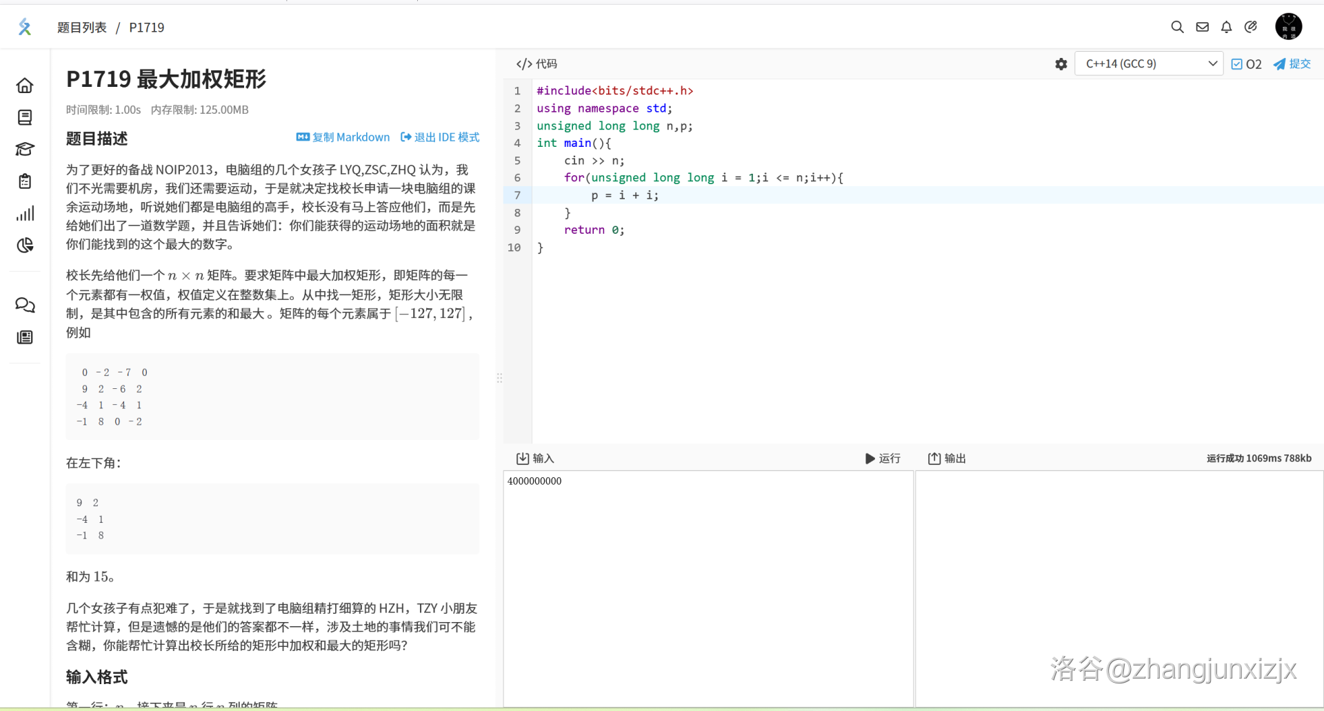 在发现有人用 $O(n^4)$ 把 P1719 的 $1 \le n \le 120$ 范围草过去了之后,我对你谷的评测机进行了研究。  发现可以恰好草过 $4E9$ 的ULL加法......…