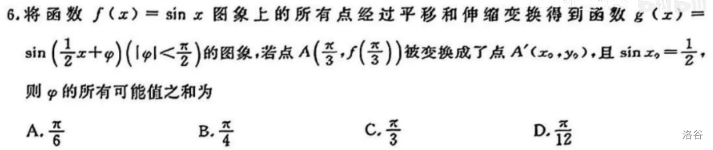 关于三角函数图像变换的处理  就题论题,以上是四川九市联考第六题。 这是一道很有意思的题,它使得我们反思图像变换的本质。 假设对于 $(x_0,y_0)$ ,经过变换得到 $(ax_0+b,y_…